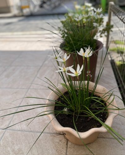 写真は新居の玄関前、玉すだれが華を添えて咲いています。