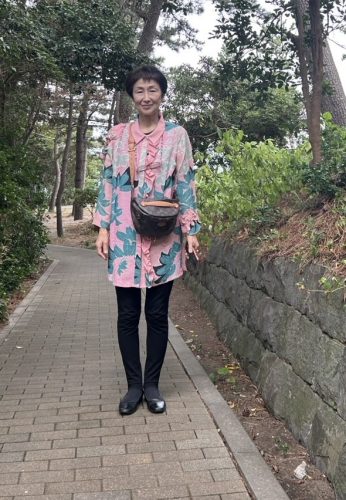 今日の私の洋服は昨年作った着物リメイクのブラウス。