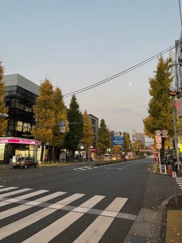 青梅街道、新宿方面の空にお月さまが現れて