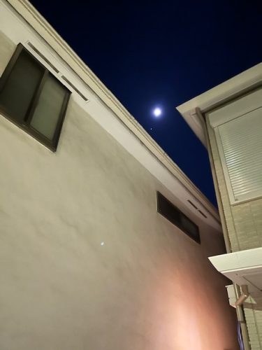 建物に遮られた西の空にお月さま。