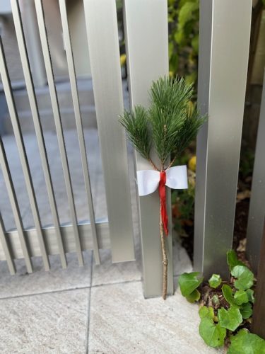 小さな門の両端にワイヤーを使って、ちょこんと付けてみた。