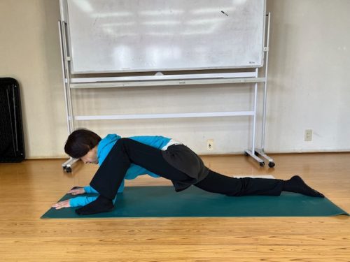 写真はトカゲのポーズ、肘を床に付けてみました。